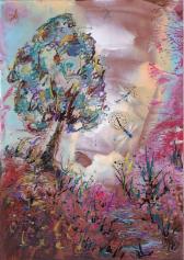 "J'aime surtout peindre des paysages en raison de la vaste gamme de couleurs et de textures, mais je crois que j'ai aussi tendance à être un peu surréaliste ou fantastique dans mes compositions, juste peindre spontanément et voir ce qui sort, et ensuite travailler dessus."